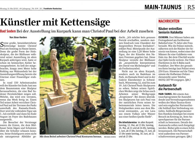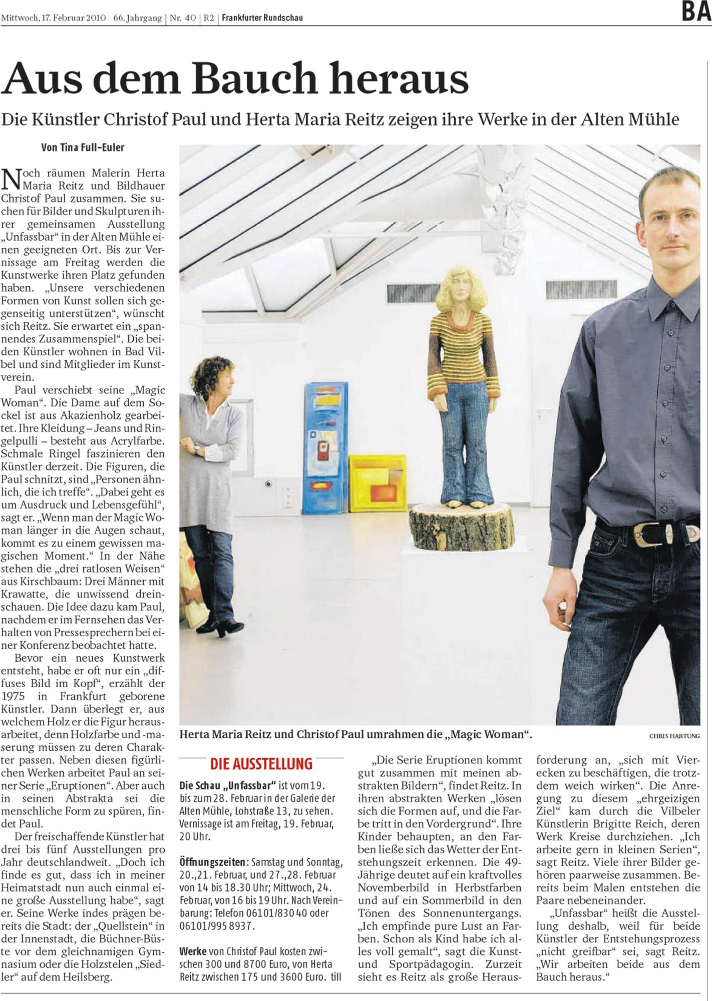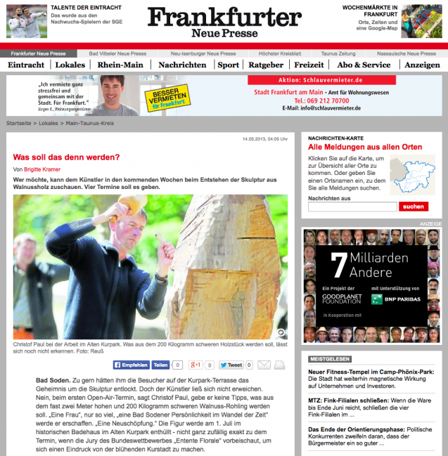 Informieren Sie sich über aktuelle Presseberichte und Neuigkeiten zu Christof Paul und seinen Arbeiten, Kritiken zu Ausstellungen oder Informationen zu Veranstaltungen und Events. Zu Werken im öffentlichen Raum haben wir hier eine Auswahl an Veröffentlichungen in Tageszeitungen zur Verfügung gestellt.